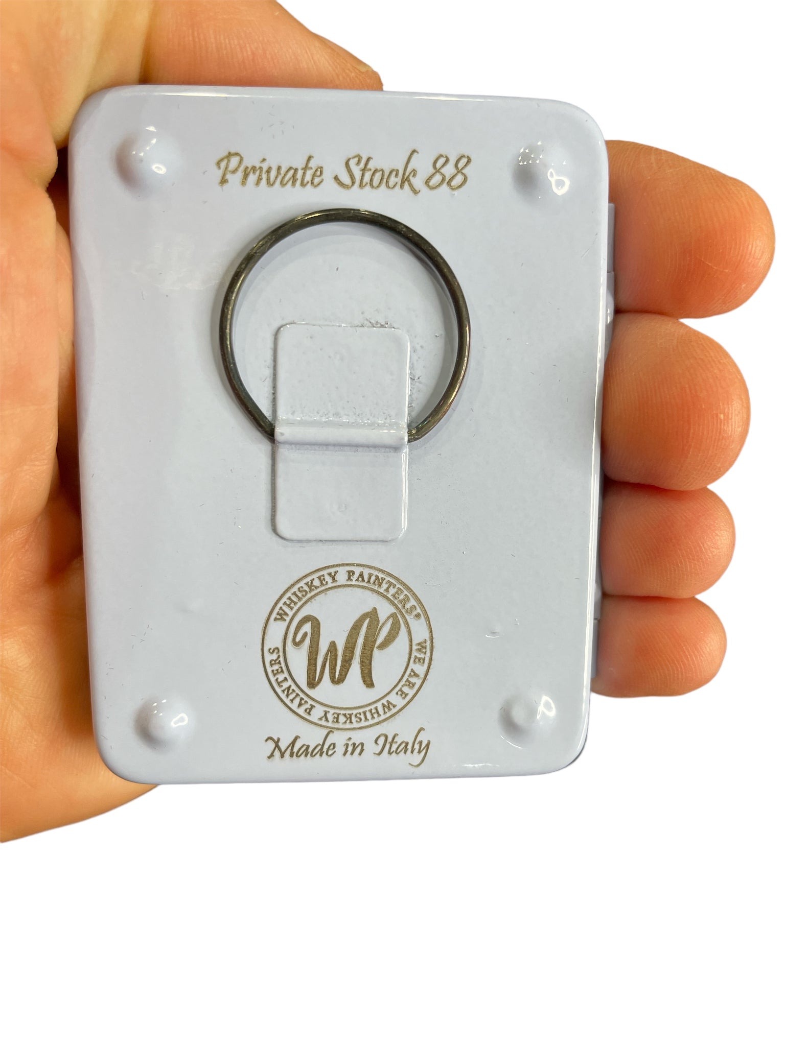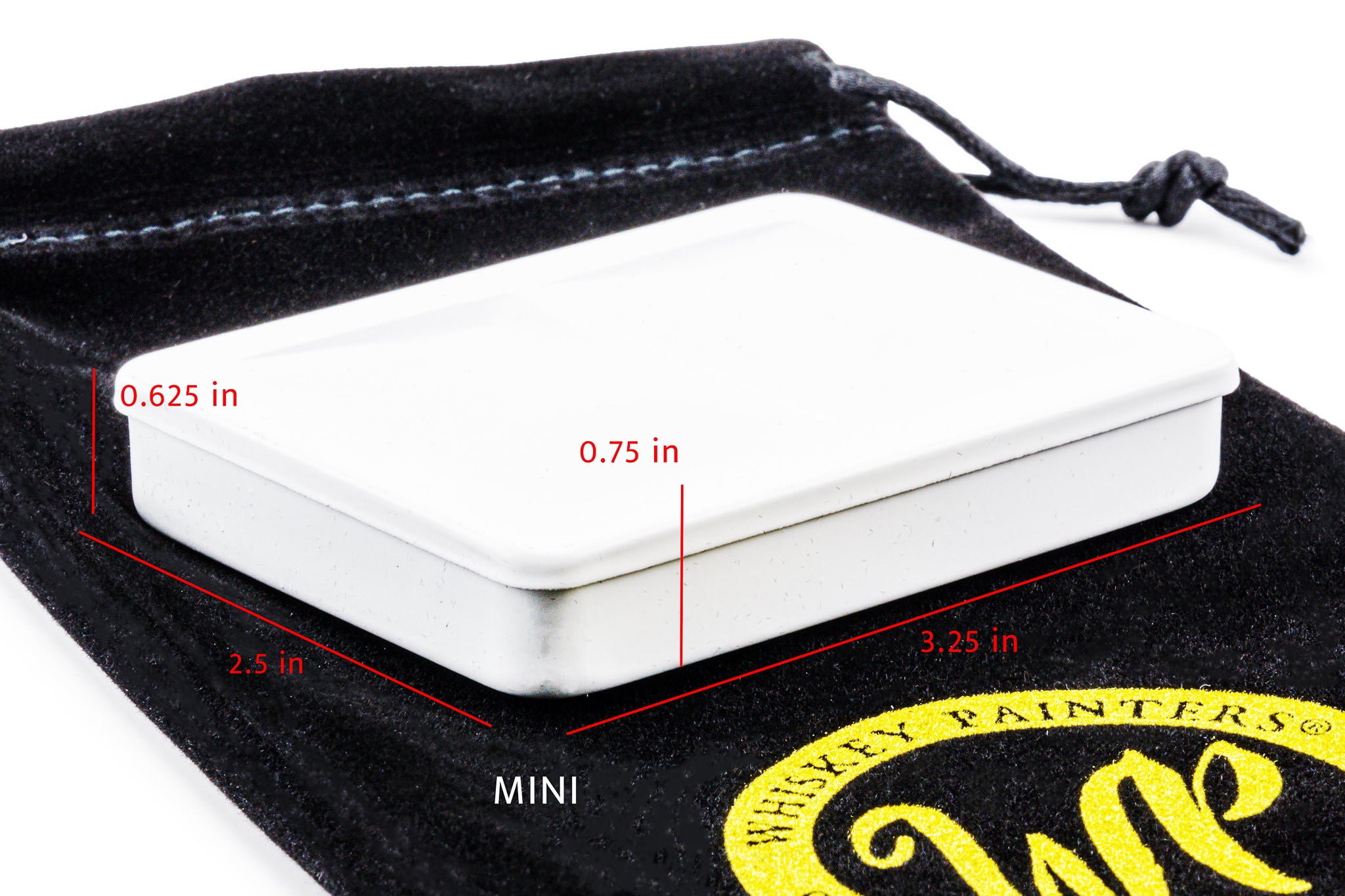 This classic mighty mini palette is what every artist needs. This palette fits into any pocket and fits into any size hand. Whether you are on a plane traveling to Italy, wearing a suit, or off to the park: it can fit into any pocket, purse or travel bag. The ring on the bottom allows it to stay secure when holding it in your palm. The lid when open makes a handy mixing area and our Whiskey Painters brush easily fits down the center for storage.