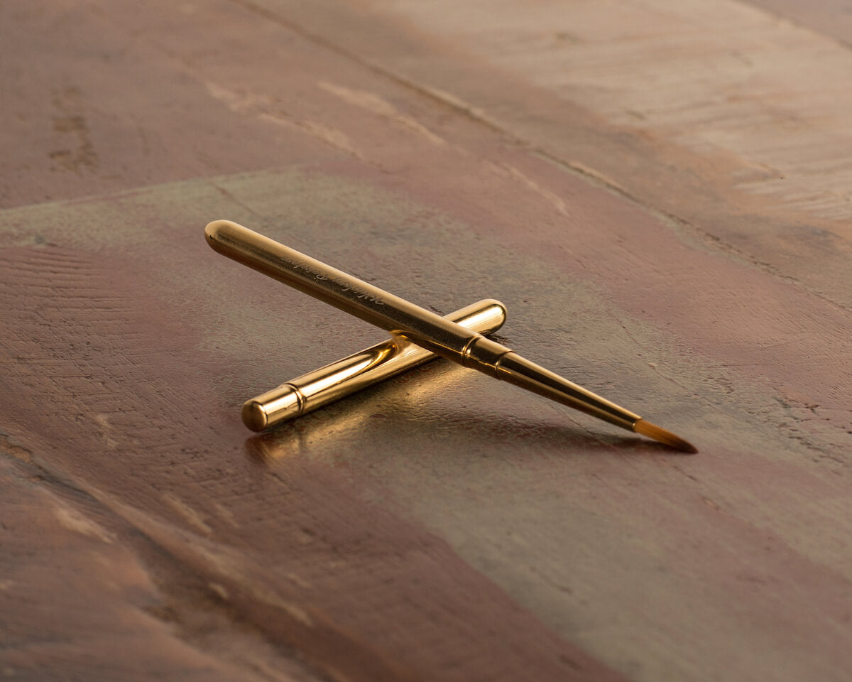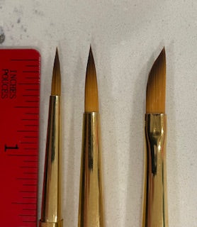 The small hole at the tip of the cap allows the hair to dry when not used for long periods of time. Size of the brush is approximately a #2 round size. The removable cap easily fits of the bottom of the brush to make them a comfortable size in any size hand.
