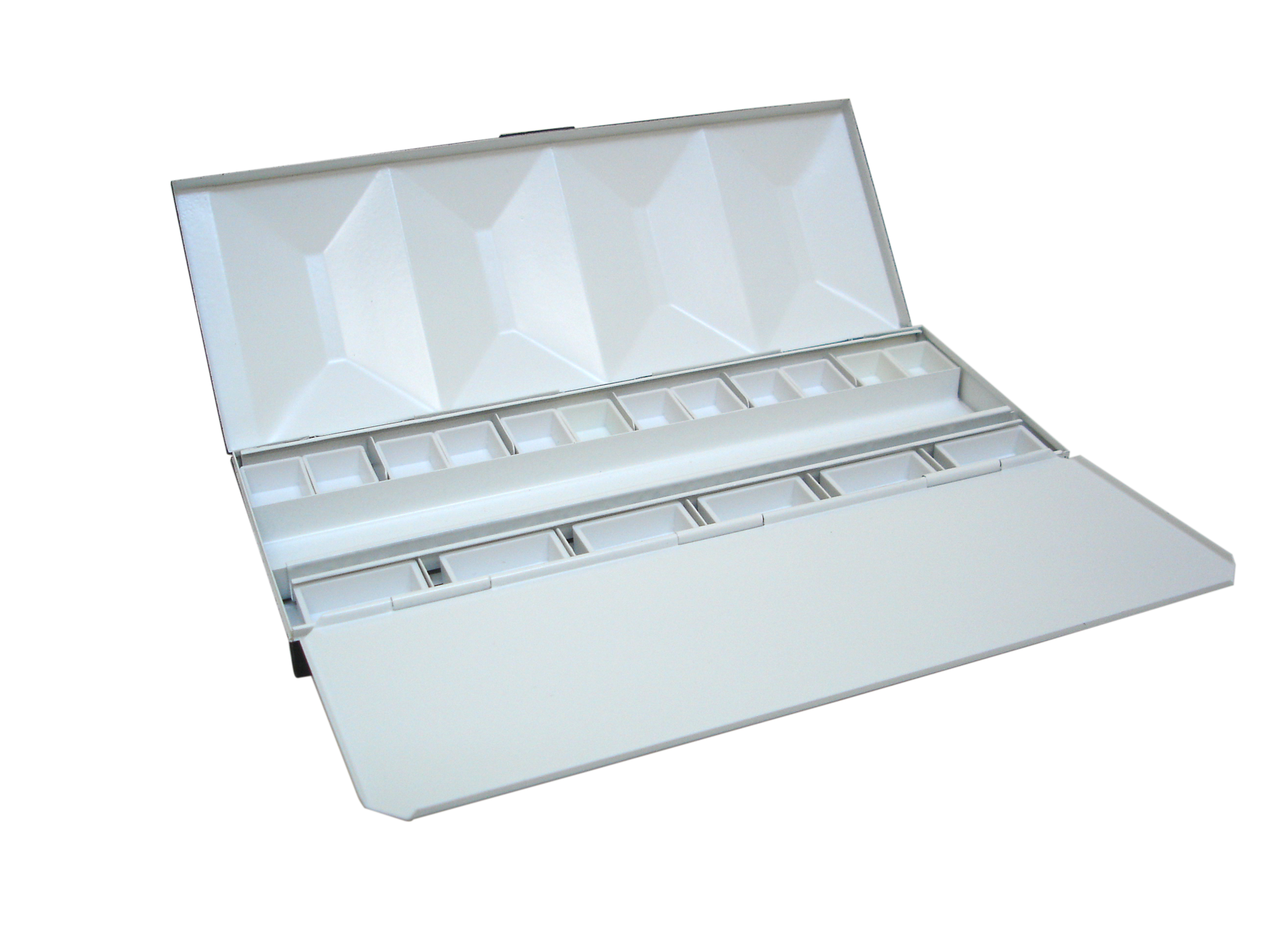 This heavy-duty palette can endure your travels to Venice or hikes to the Golden Gate bridge. This Palette will hold 12 Full or 24 half pans. Be creative and mix the palette with full and half pans. Just squeeze the watercolors into the pans with your most popular colors and the half pans with the secondary or tinting colors like passionate light greys, distinctive flesh tones or vibrant violet tones.